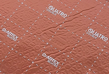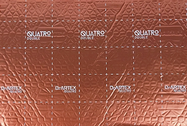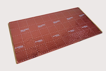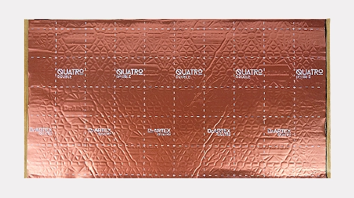 Quatro 采用致密、高粘度的丁基胶粘剂复合材料,并层压厚实的压花铝箔。这种久经考验的结构可提供最大的振动转换率和卓越的刚性,确保材料在整个工作温度范围内保持牢固粘附和稳定。